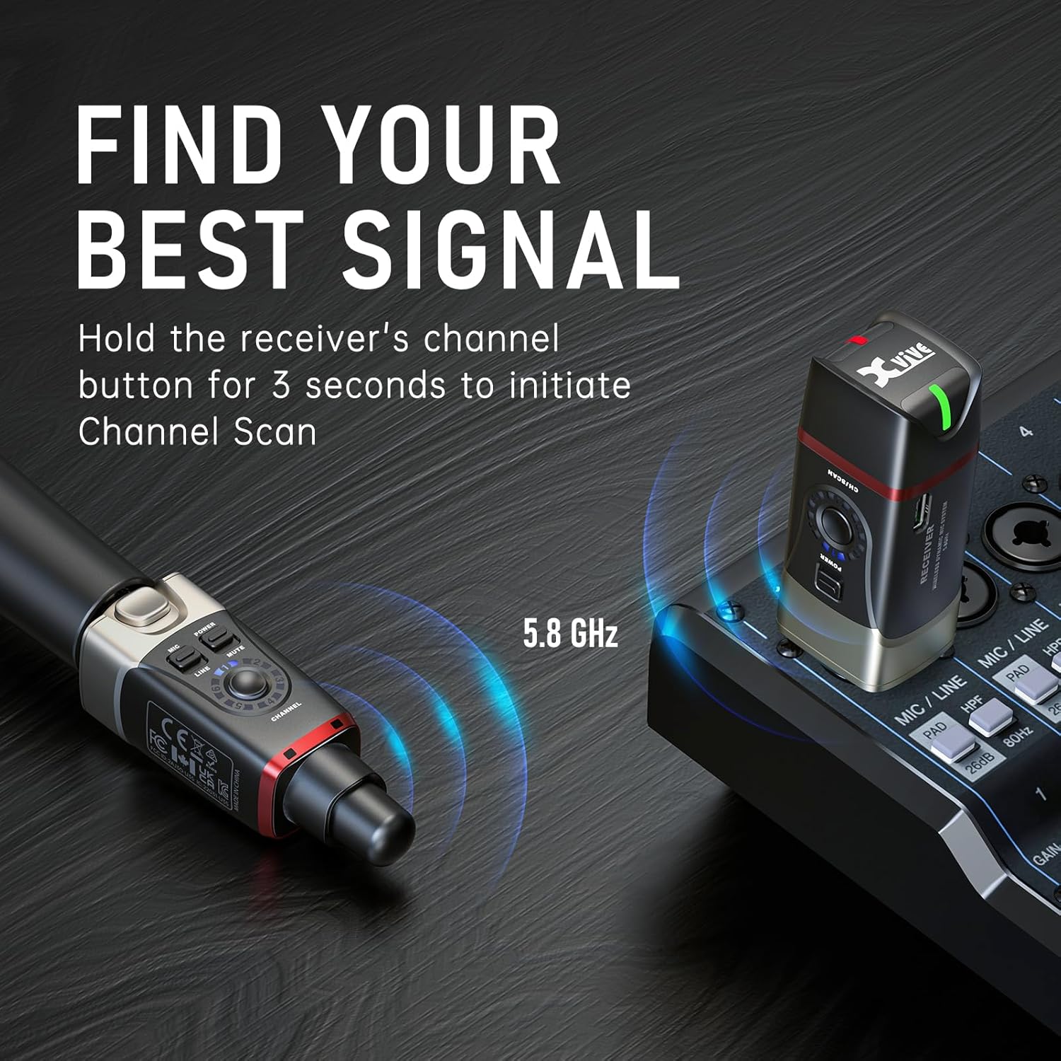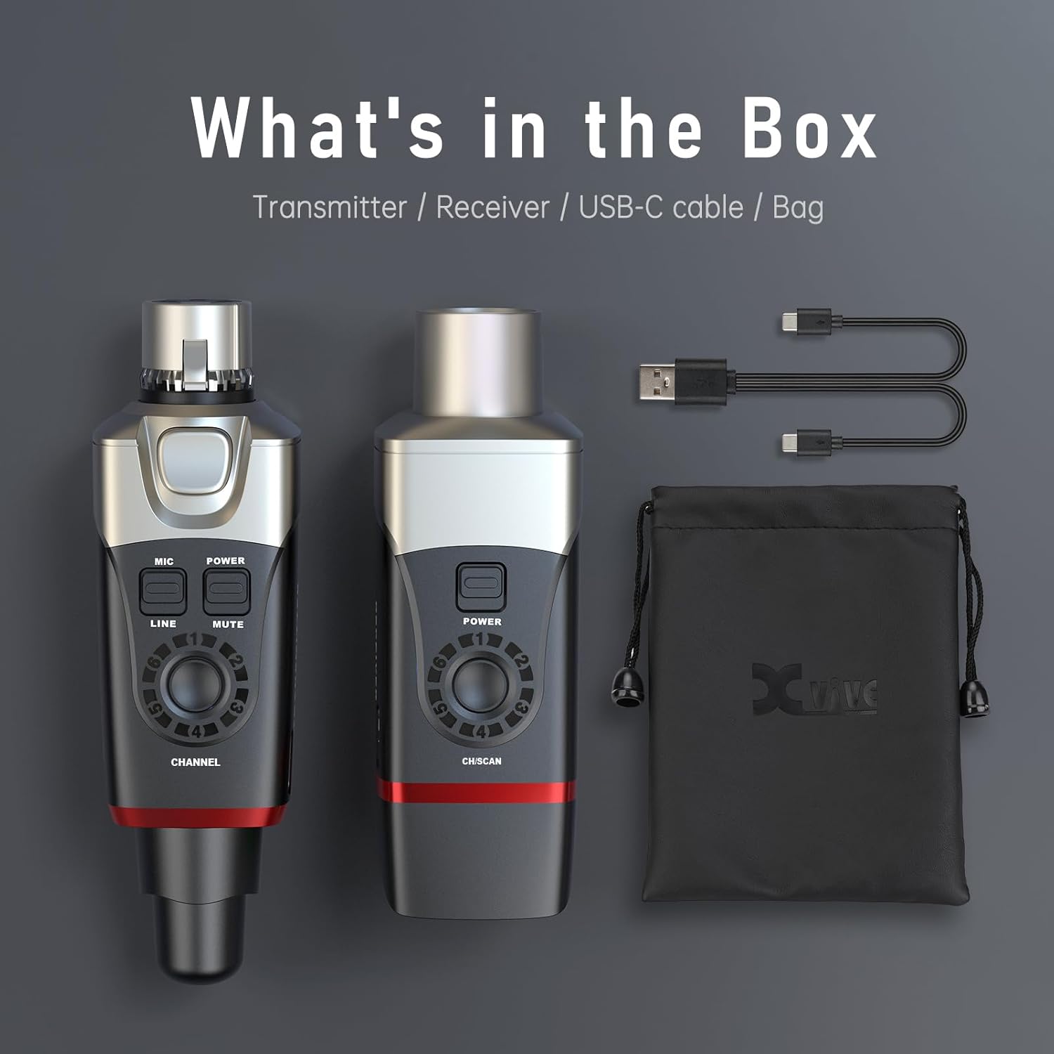 Xvive U35 Wireless Mic System: 5.8GHz XLR Transmitter & Receiver, Channel Scan, Compatible with Dynamic Mics, Audio Mixers, PA Systems.